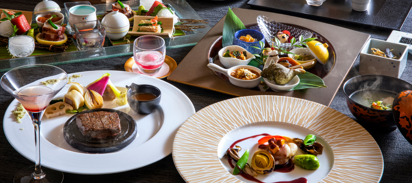 和食の料理長と洋食のシェフが織りなす繊細かつ斬新な料理を、趣の異なる4つのお食事処でお愉しみください。